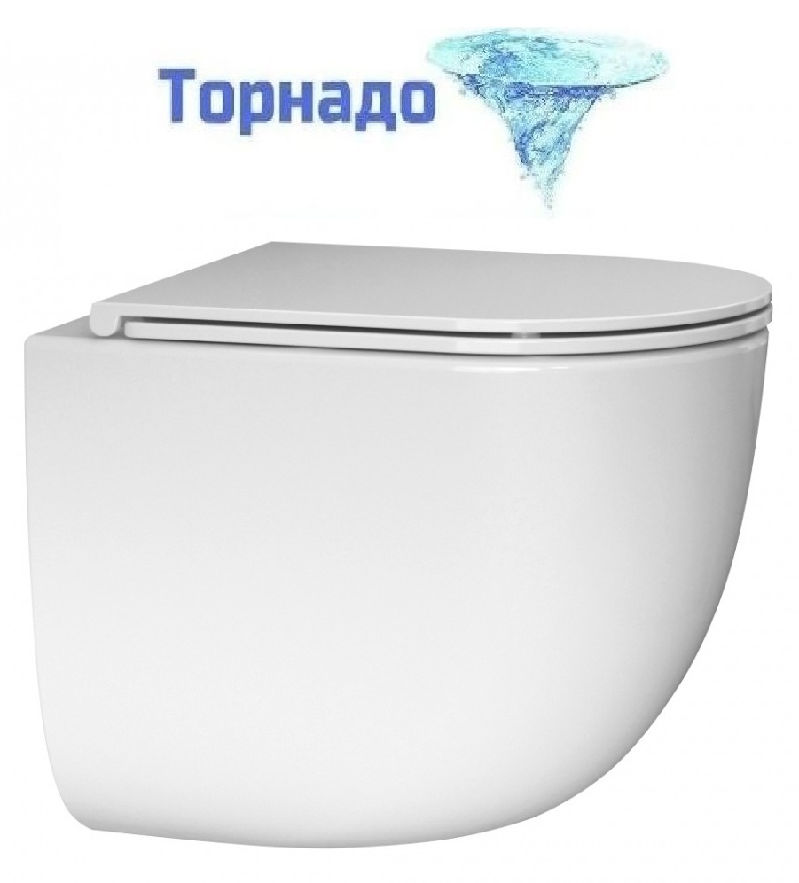 Унитаз подвесной безободковый Abber Bequem AC1132TC с тонкой крышкой микролифт (Система смыва торнадо)