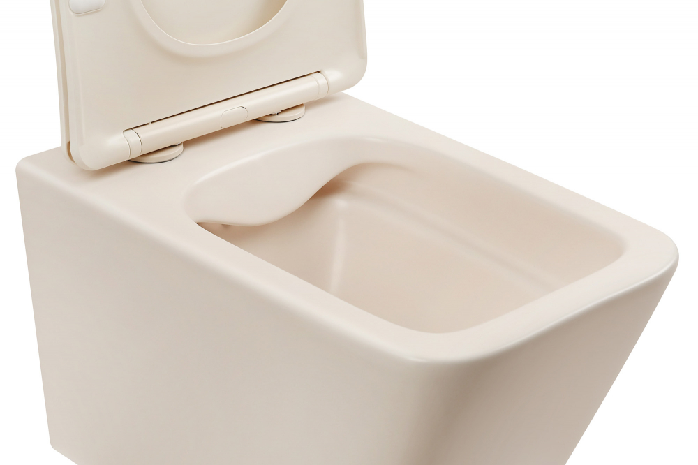 Унитаз подвесной безободковый Abber Rechteck AC1201MBE, сиденье с тонкой крышкой микролифт, цвет светло-бежевый матовый.