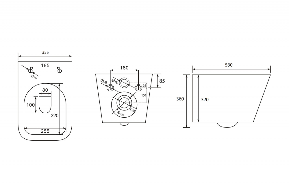 Характеристики унитаз безободковый,унитаз подвесной Abber (AC1201MBE)