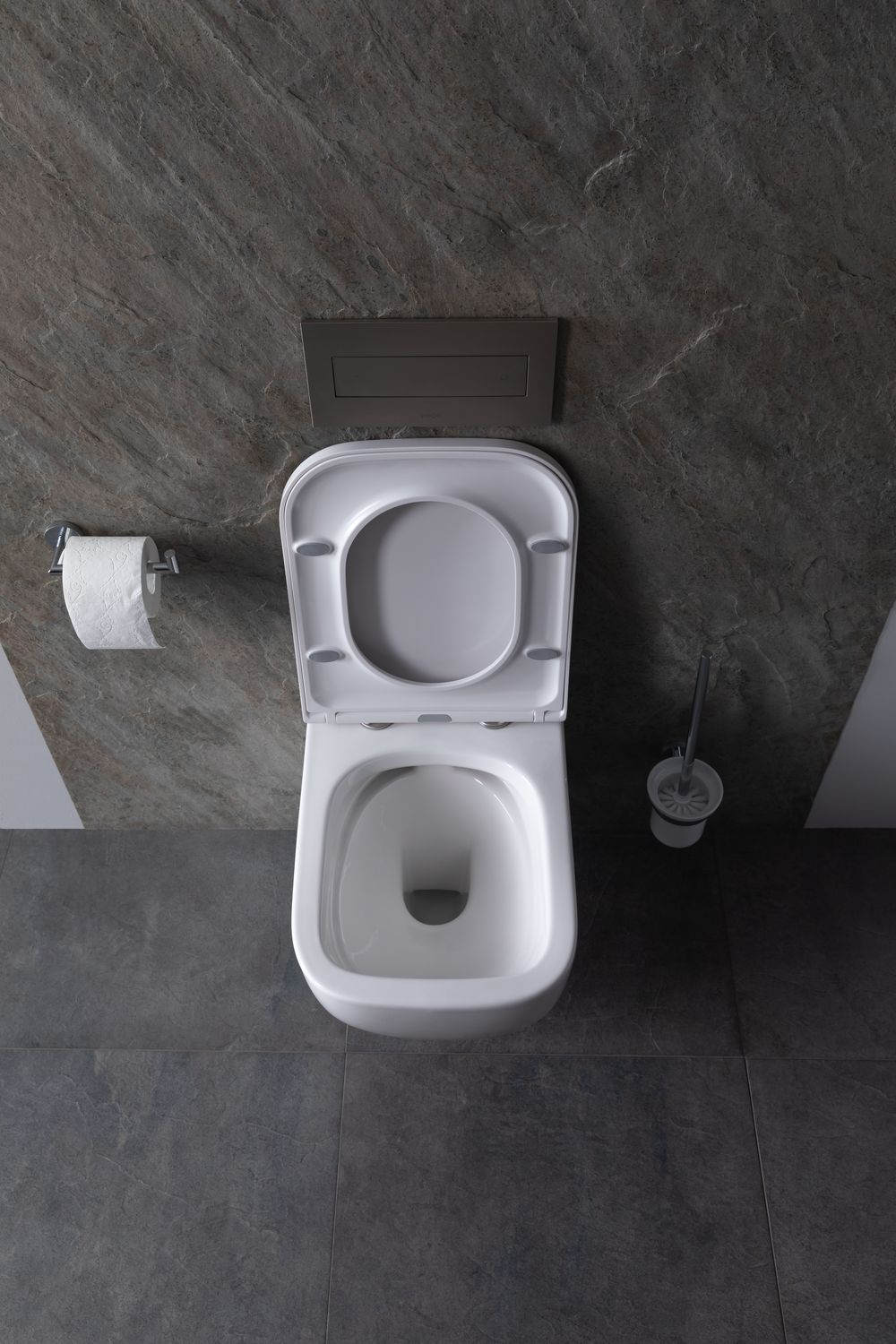 - Прямоугольный подвесной унитаз с мягкими углами Allen Brau Infinity белого цвета в стиле модерн — находка для любителей строгих форм и исполнений.
