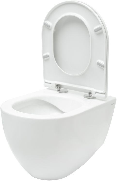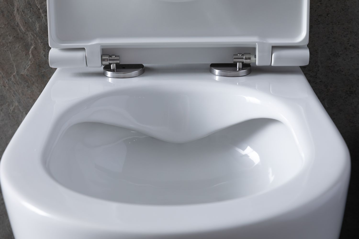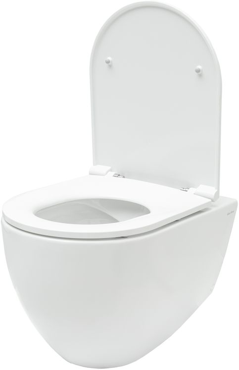 - Округлая форма, крышка-сиденье с функцией микролифт и качественная керамика — отличительные особенности модели. Она крепится на стене, что позволяет проводить уборку без перестановки сантехники.