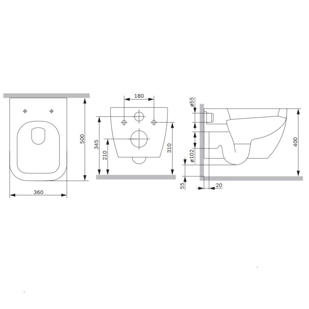 - стекловидный фарфор считается самым гигиеничным и влагостойким материалом, а наличие скрытых креплений и фанового выхода обеспечивают легкость уборки ; быстросъемное дюропластовое сиденье защищает от образования царапин.