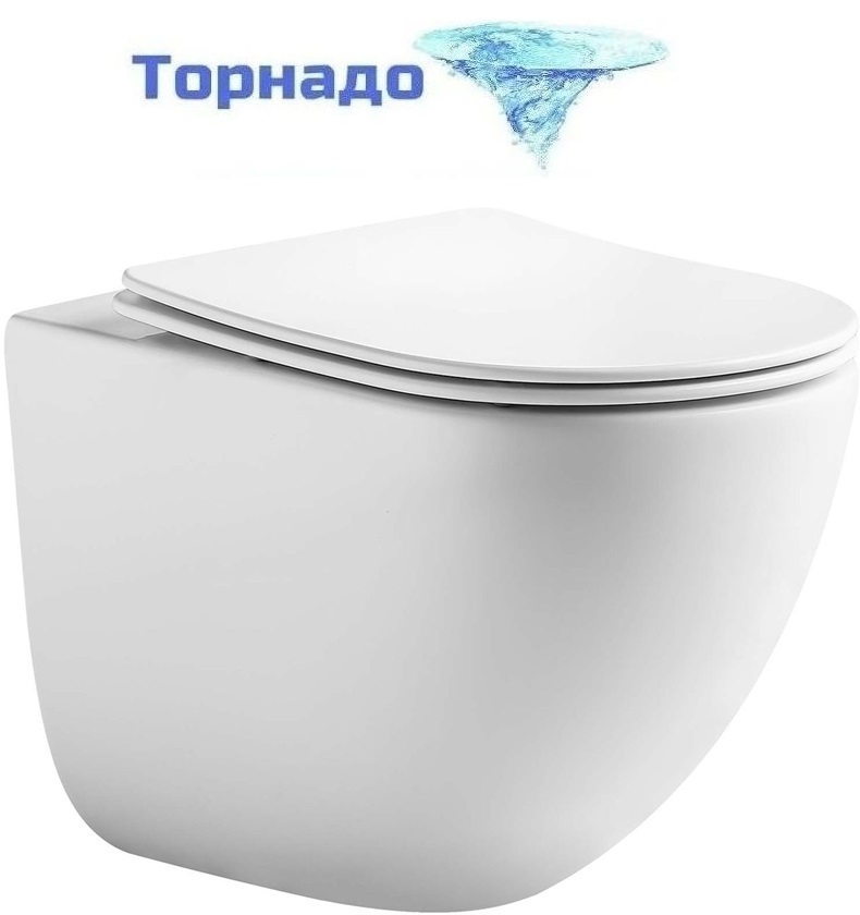Унитаз подвесной безободковый Aquatek Гелиос AQ1993T-00 с тонкой крышкой микролифт, с полностью закрытым гидрозатвором (система смыва Торнадо)