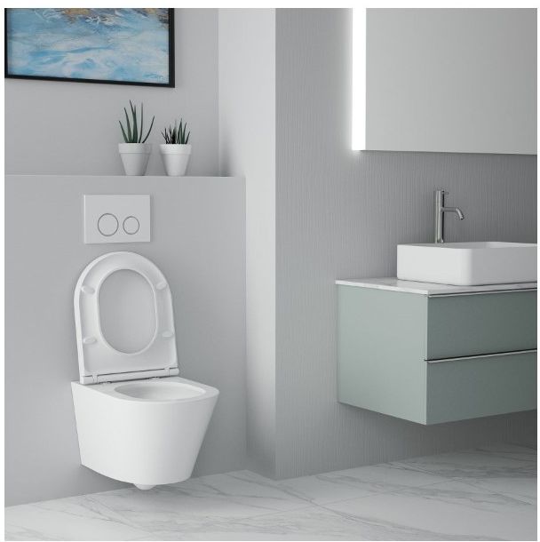 Унитаз подвесной безободковый Art&Max Bari AM822-V/SC с тонкой крышкой микролифт