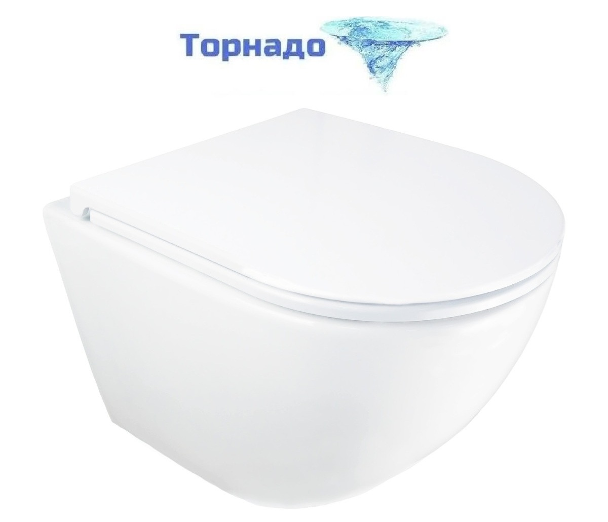 Унитаз подвесной безободковый Azario ADAGIO AZ-5177T-WHT с тонкой крышкой микролифт (система смыва Торнадо)