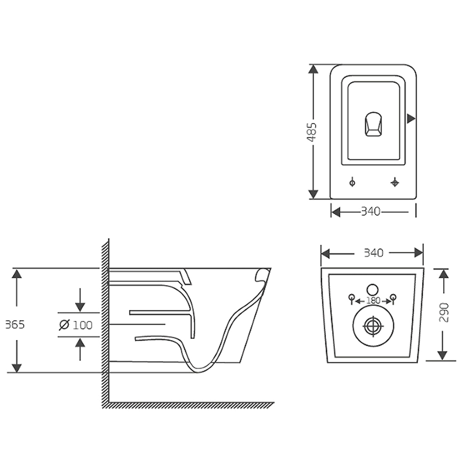 - Габариты 340х485х365 мм идеально подходят для небольших ванных комнат, экономя пространство и создавая ощущение легкости.