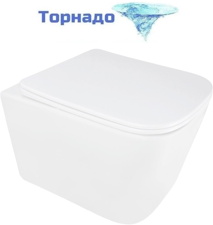 Унитаз подвесной безободковый Azario AIRA AZ-5171T-WHT с тонкой крышкой микролифт (система смыва Торнадо)