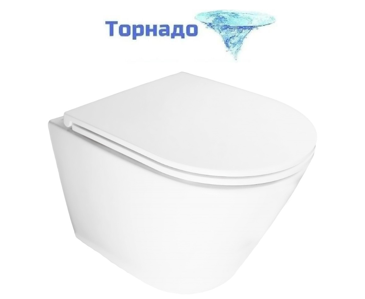 Унитаз подвесной безободковый Azario BLISS AZ-5179T-WHT с тонкой крышкой микролифт (система смыва Торнадо)