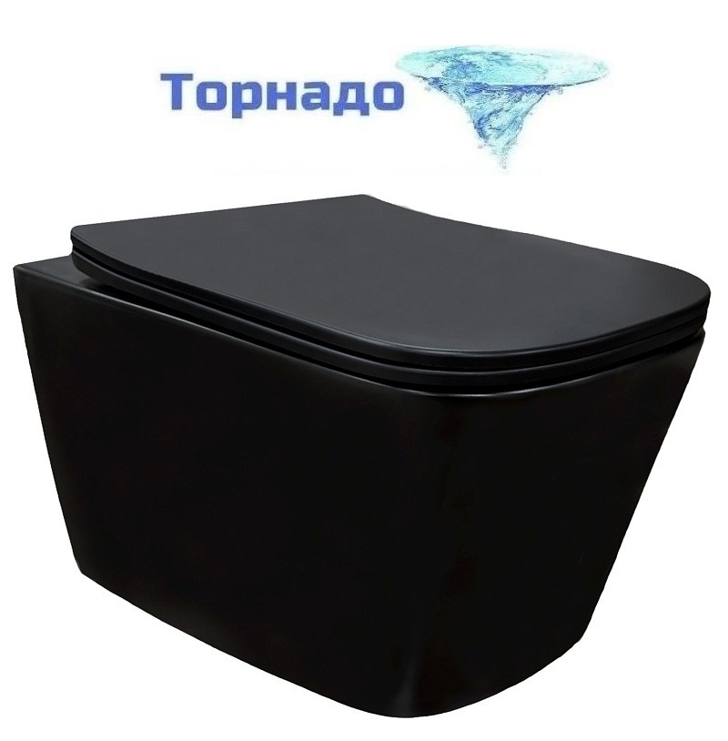 Унитаз подвесной безободковый Azario Cascad-Black AZ-2303A-MB с быстросъемным сиденьем микролифт (система смыва Торнадо) чёрный матовый