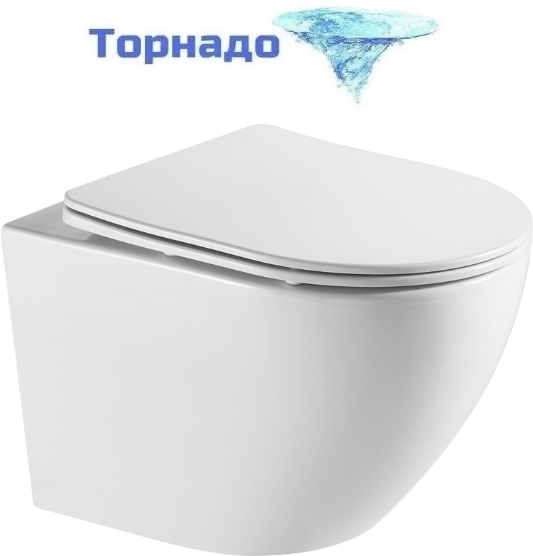 Унитаз подвесной безободковый Azario Grado AZ-0046-UQ3 с крышкой микролифт (Система смыва торнадо)