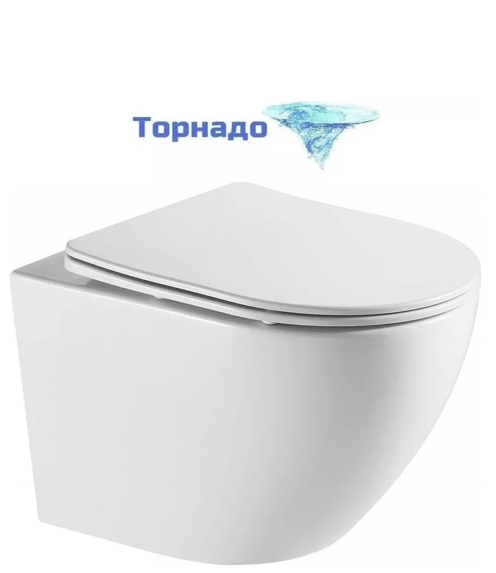 Унитаз подвесной безободковый Azario Grado AZ-0046-UQ1 с тонкой крышкой микролифт (Система смыва торнадо)