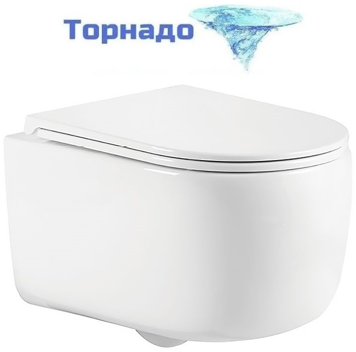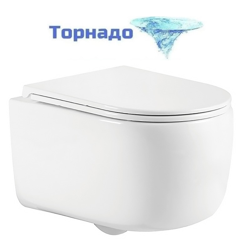 Унитаз подвесной безободковый Azario Nata AZ-5102T-WHT с тонким быстросъемным сиденьем микролифт (Система смыва торнадо)