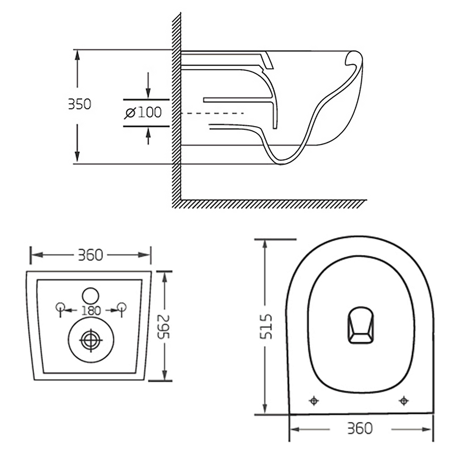 - Модель размером 360х515х350 мм выполнена безободковой конструкцией, что обеспечивает максимальную гигиеничность и легкость в уходе.