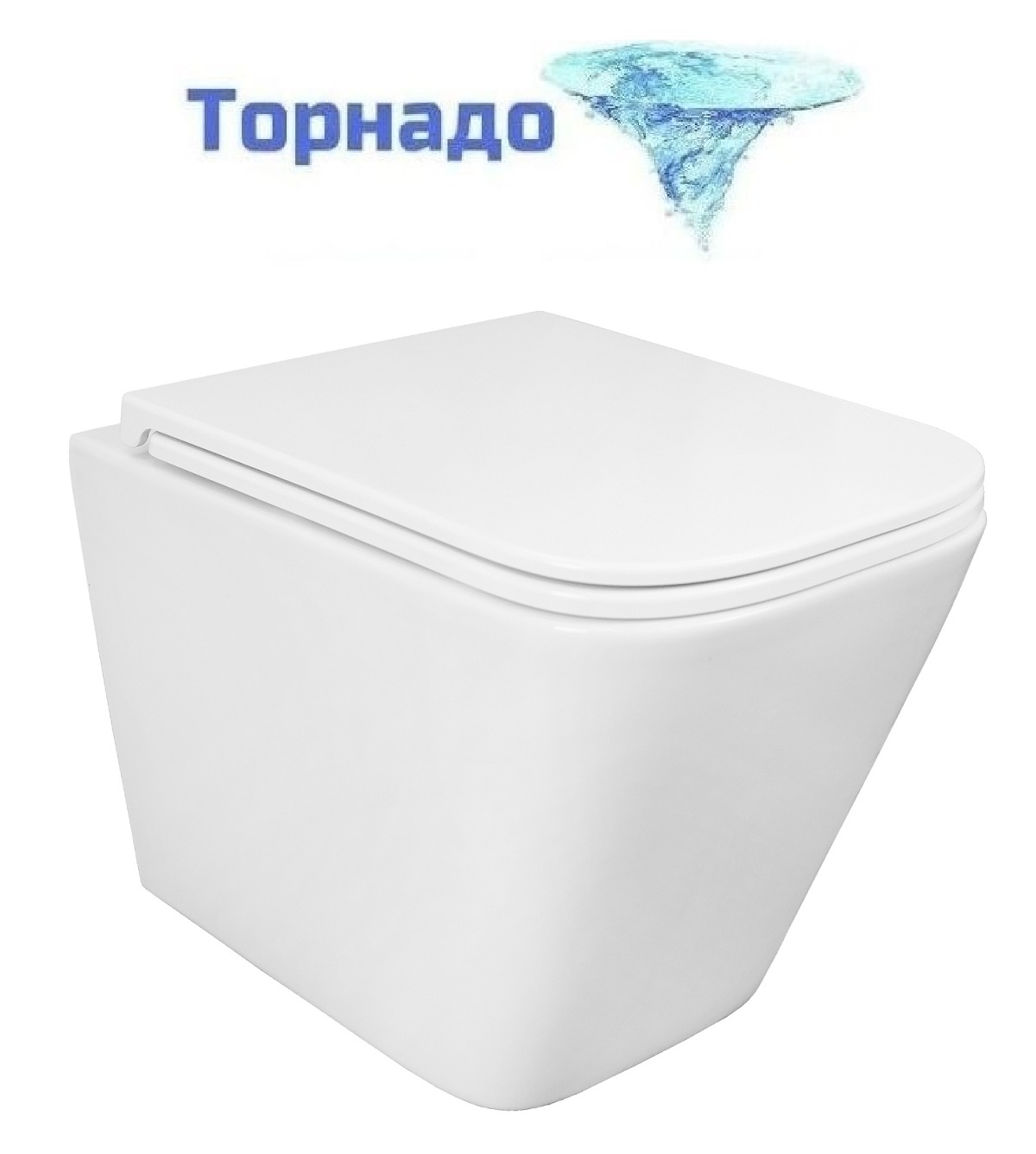 Унитаз подвесной безободковый Azario PRO PRO-0002 UQ3 с тонкой крышкой микролифт (Система смыва торнадо)