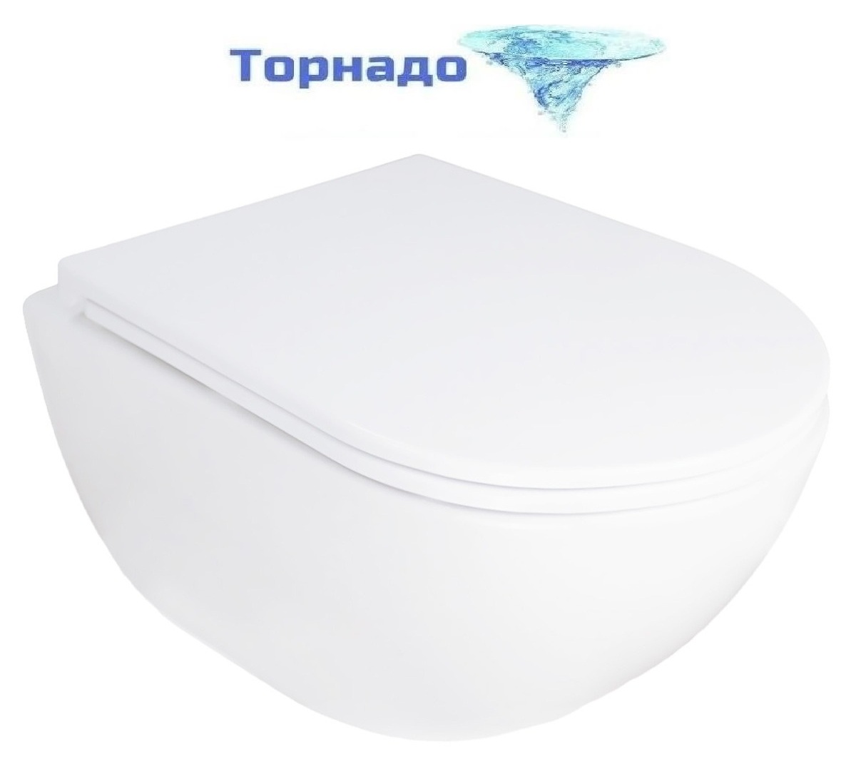 Унитаз подвесной безободковый Azario RUMBA AZ-5175T-WHT с тонкой крышкой микролифт (система смыва Торнадо)