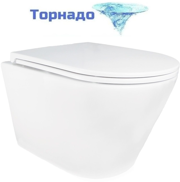 Унитаз подвесной безободковый Azario SONGO AZ-5180T-WHT с тонкой крышкой микролифт (система смыва Торнадо)