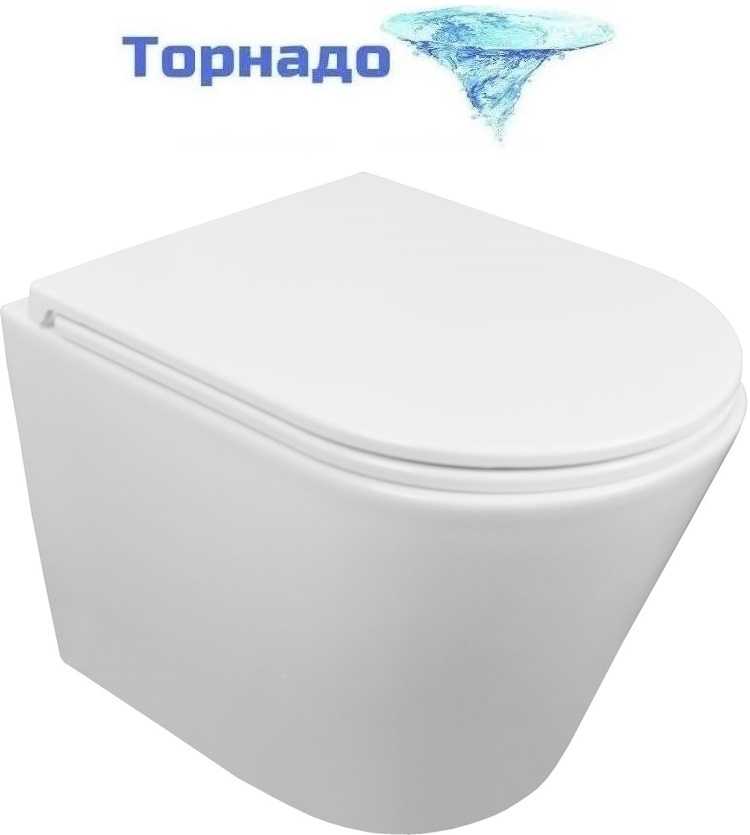Унитаз подвесной безободковый Azario Teramo AZ-0053-UQ3 (система смыва Торнадо) с тонкой крышкой микролифт
