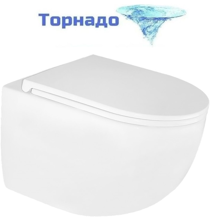 Унитаз подвесной безободковый Azario Terso AZ-092E-UQ3 (система смыва Торнадо) с тонкой крышкой микролифт