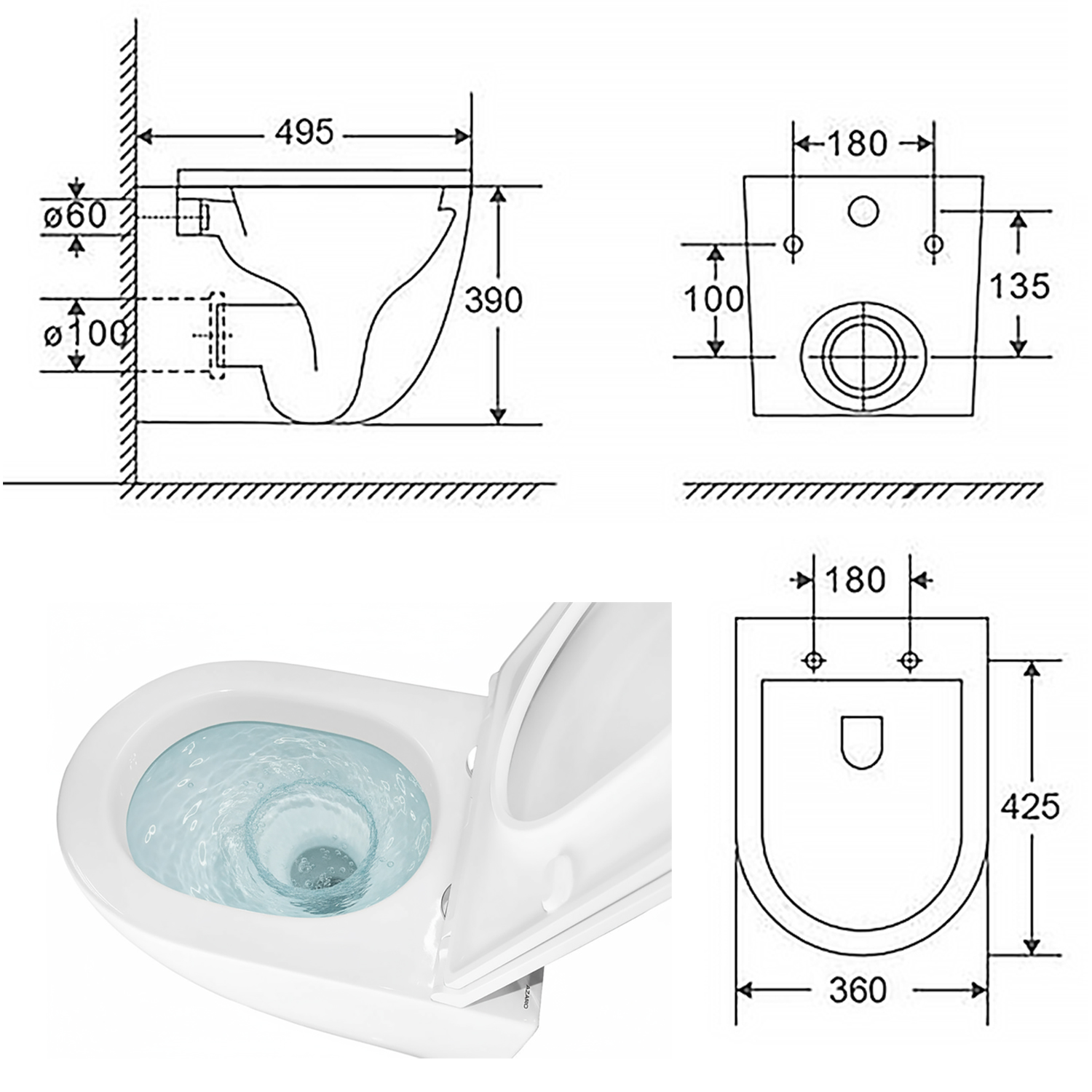 Характеристики унитаз безободковый, унитаз подвесной Azario (AZ-0093UQ3)