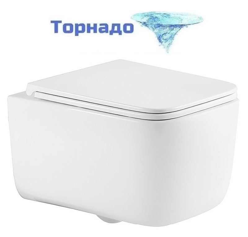 Унитаз подвесной безободковый Azario Vater AZ-5104T-WHT с тонким быстросъемным сиденьем микролифт (Система смыва торнадо)
