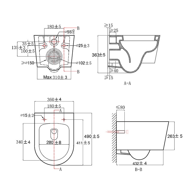 - Модель размером 490х360х360 мм выполнена безободковой конструкцией, что обеспечивает более гигиеничную и эффективную очистку чаши.