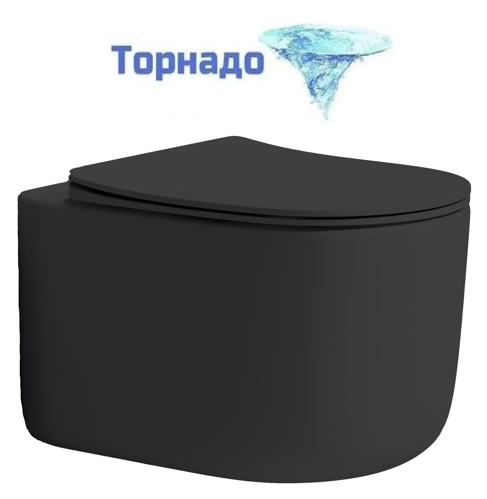 Унитаз подвесной безободковый Boheme FLOW 969-SET-B с тонкой крышкой микролифт (система смыва Торнадо) чёрный