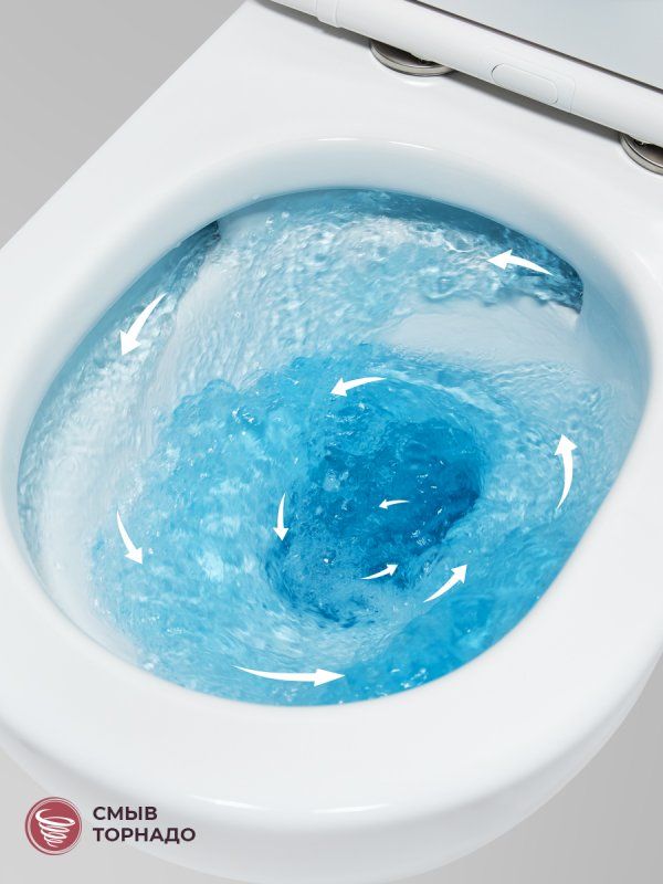 - Используется самая эффективная система смыва TORNADO: струи воды из отверстий в чаше создают эффект водоворота, что позволяет полностью очищать всю внутреннюю поверхность унитаза. Работает почти бесшумно, эффективный смыв осуществляется даже небольшим количеством воды, что позволяет настроить объем смыва на минимальные значения.