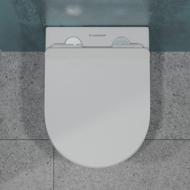 Унитаз подвесной безободковый EvaGold EG070001, каскадный слив, сиденье с тонкой крышкой микролифт, цвет белый.