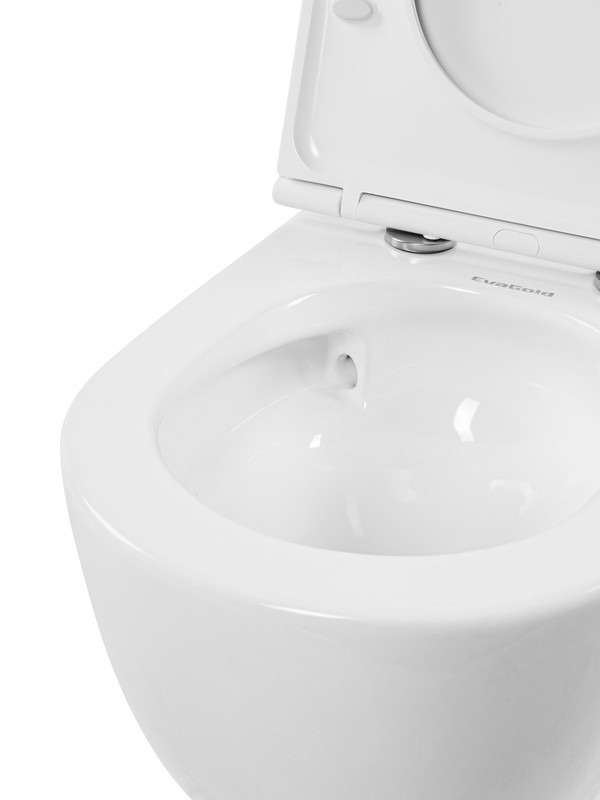 Унитаз подвесной безободковый EvaGold EG070032, круговой слив, сиденье с тонкой крышкой микролифт, цвет белый.