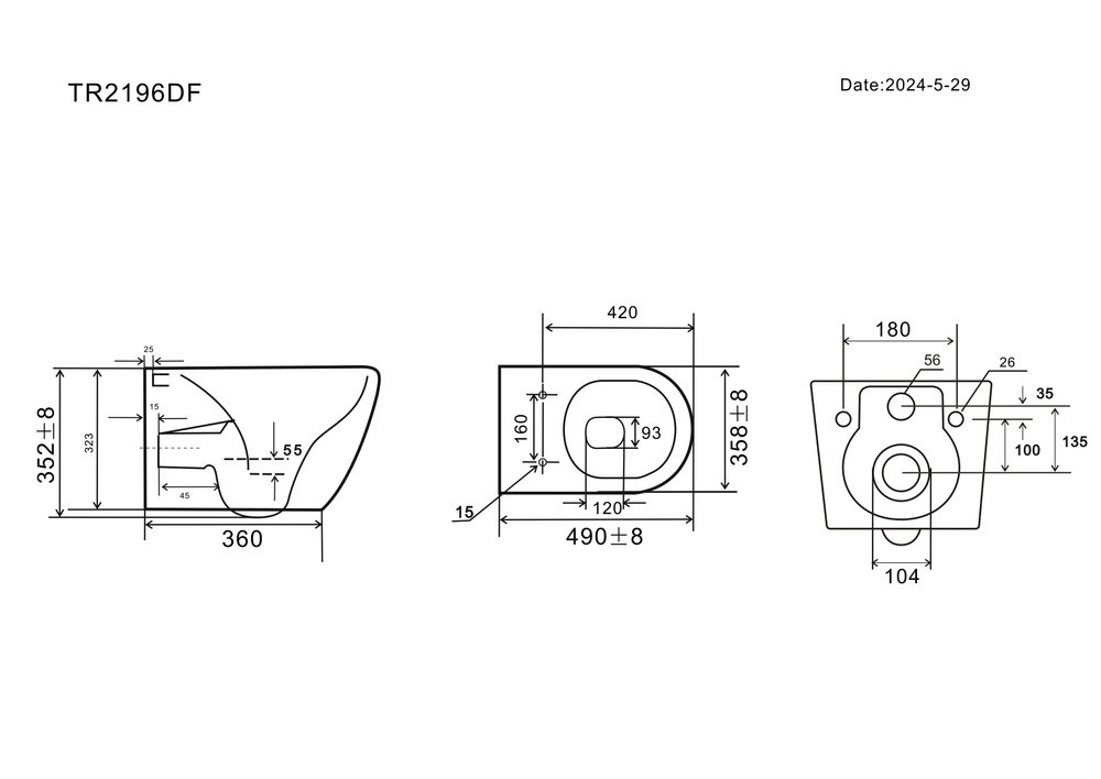 Характеристики унитаз безободковый,унитаз подвесной EvaGold (EG070032)