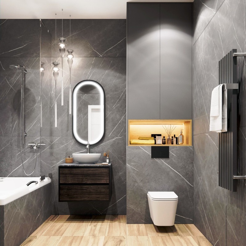 Основное преимущество подвесного унитаза - скрытые коммуникации, что придает санузлу аккуратный вид, визуально увеличивает пространство и облегчает уборку пола.