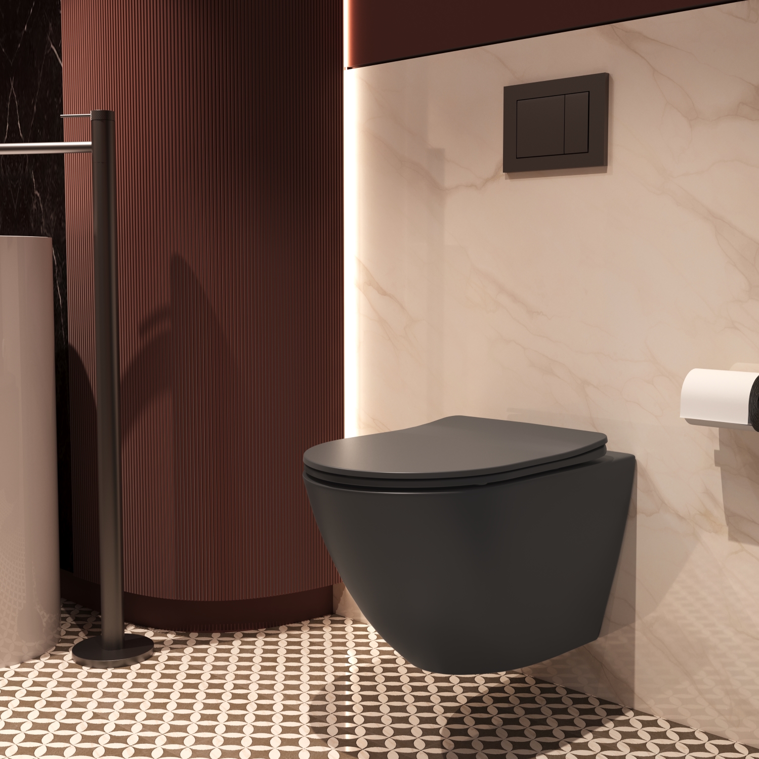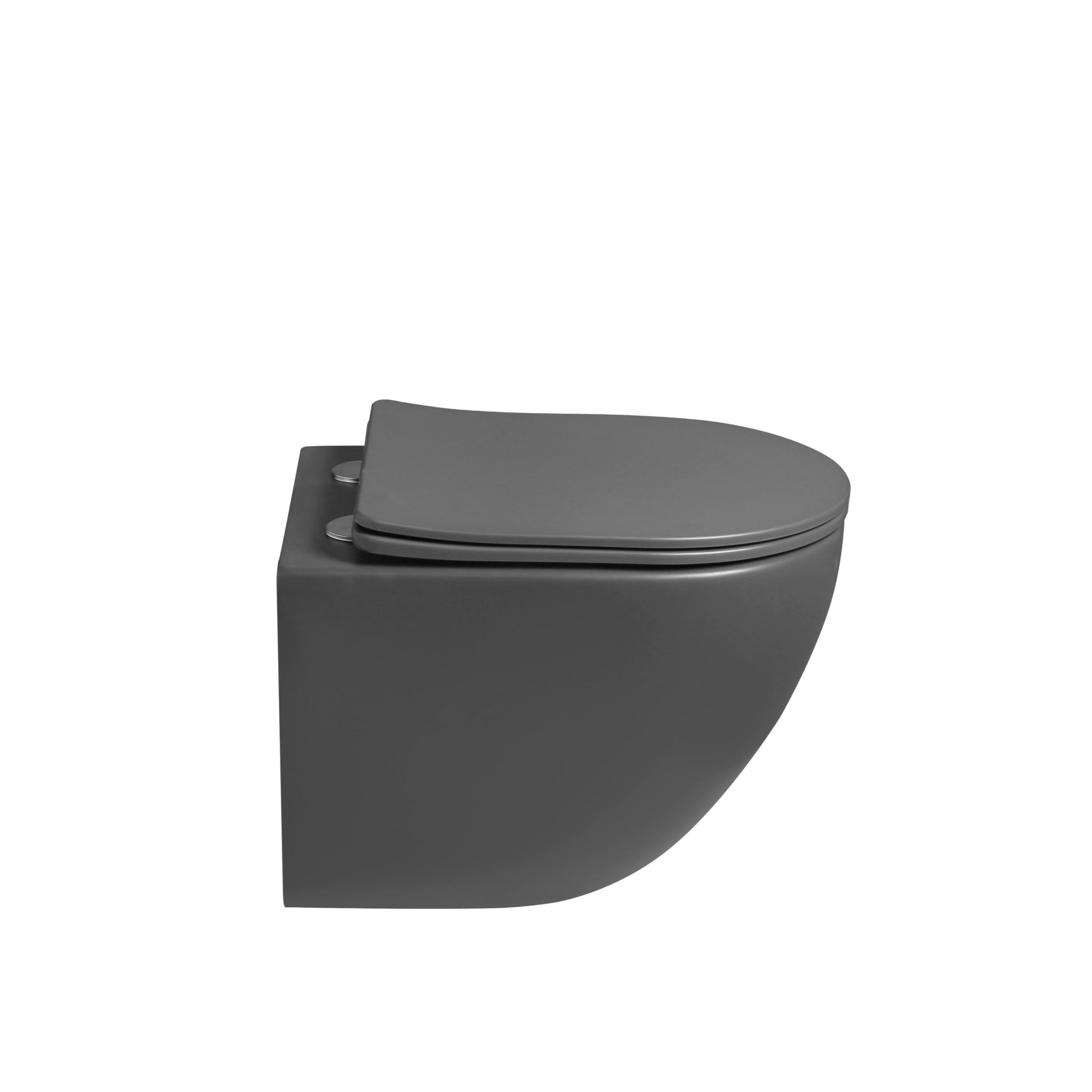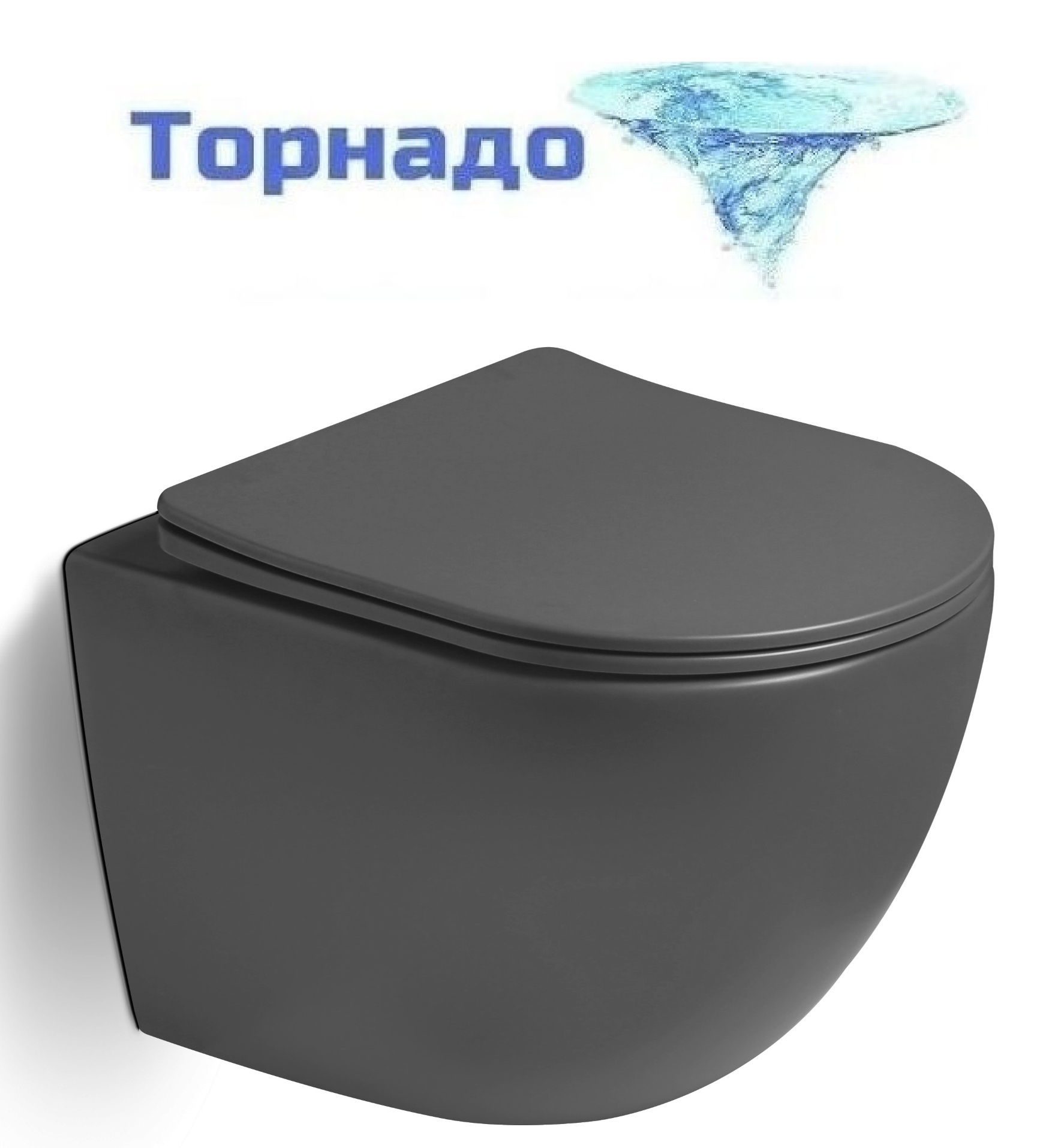 Унитаз подвесной безободковый Vincea Globo VT1-14STMA с ультратонкой крышкой микролифт (Система смыва торнадо) антрацит матовый