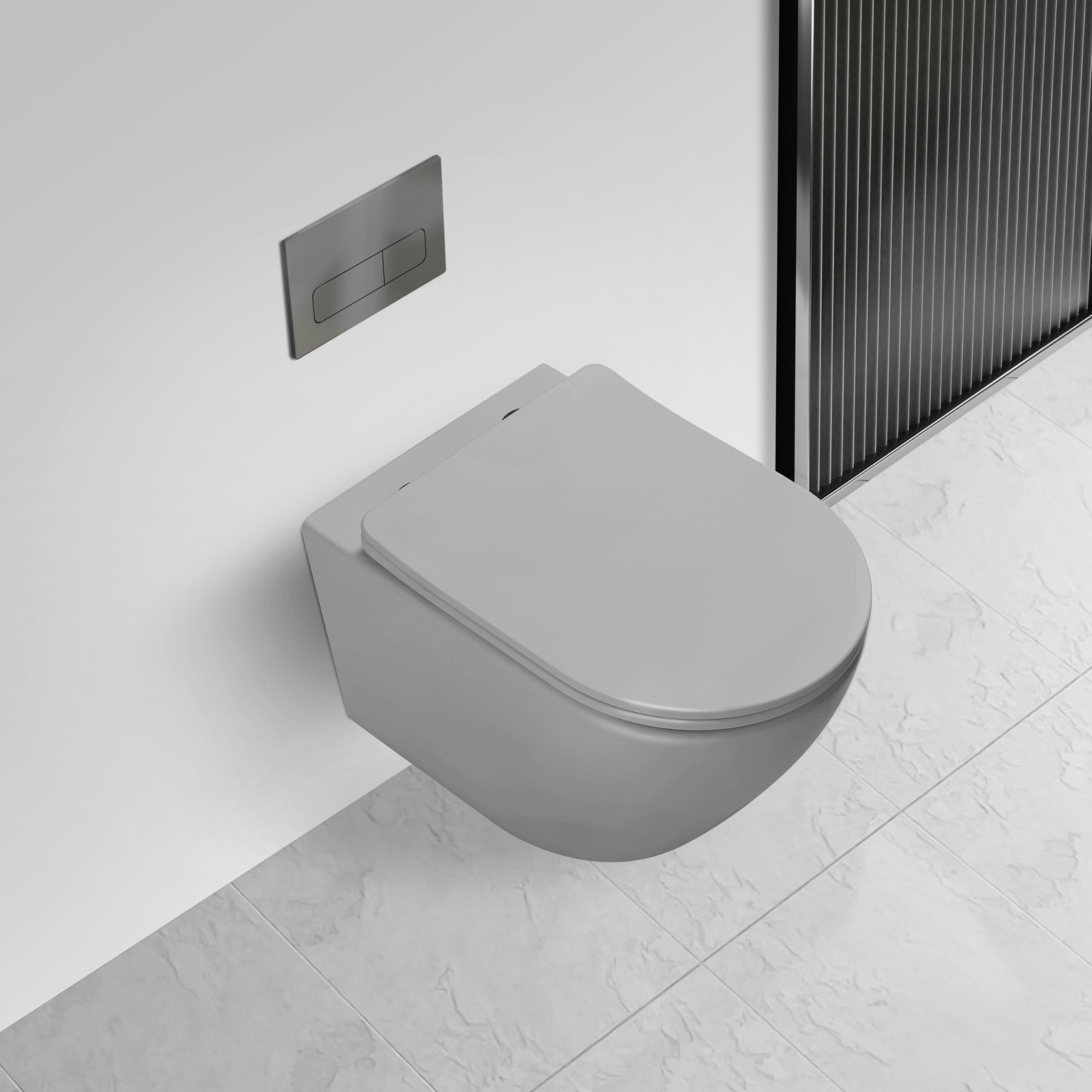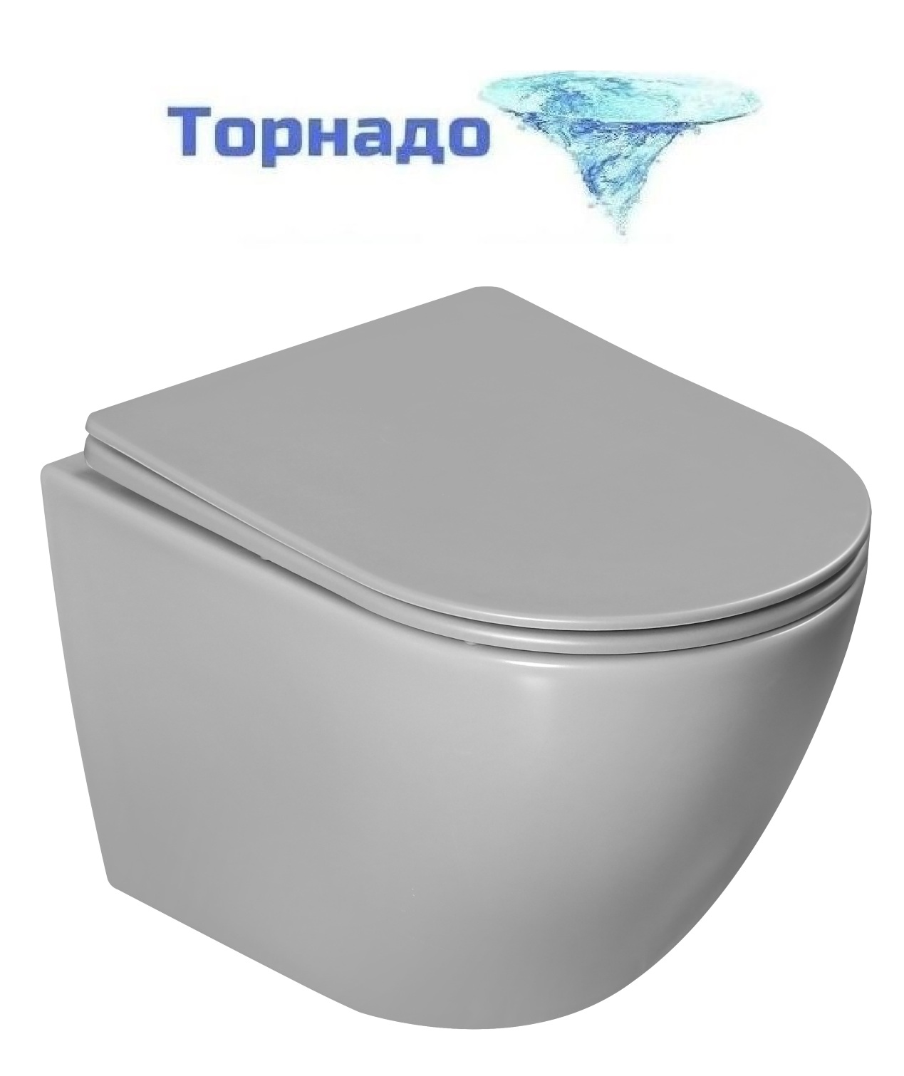 Унитаз подвесной безободковый Vincea Globo VT1-14TMG с ультратонкой крышкой микролифт (Система смыва торнадо) серый матовый