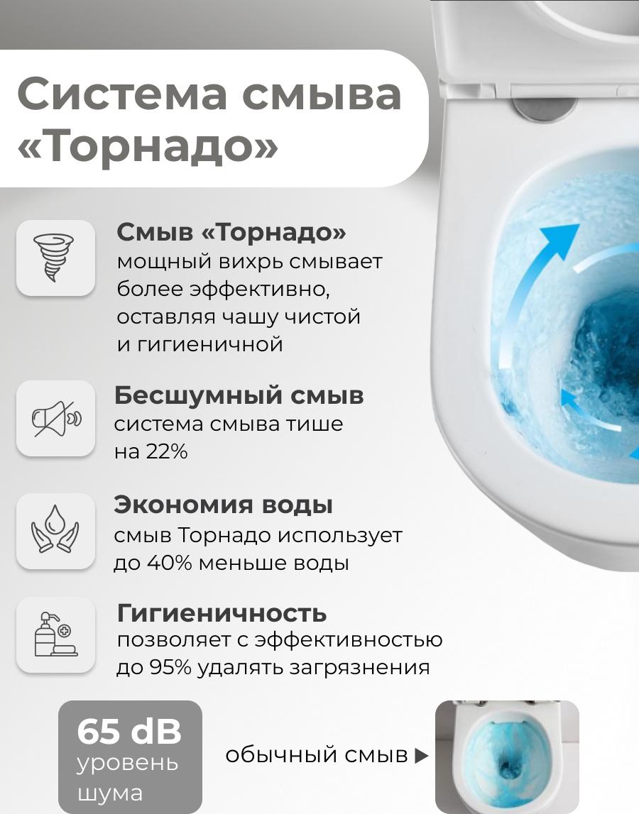 Унитаз подвесной безободковый Grossman GR-4408SQ с крышкой микролифт (Система смыва торнадо)
