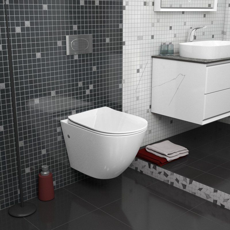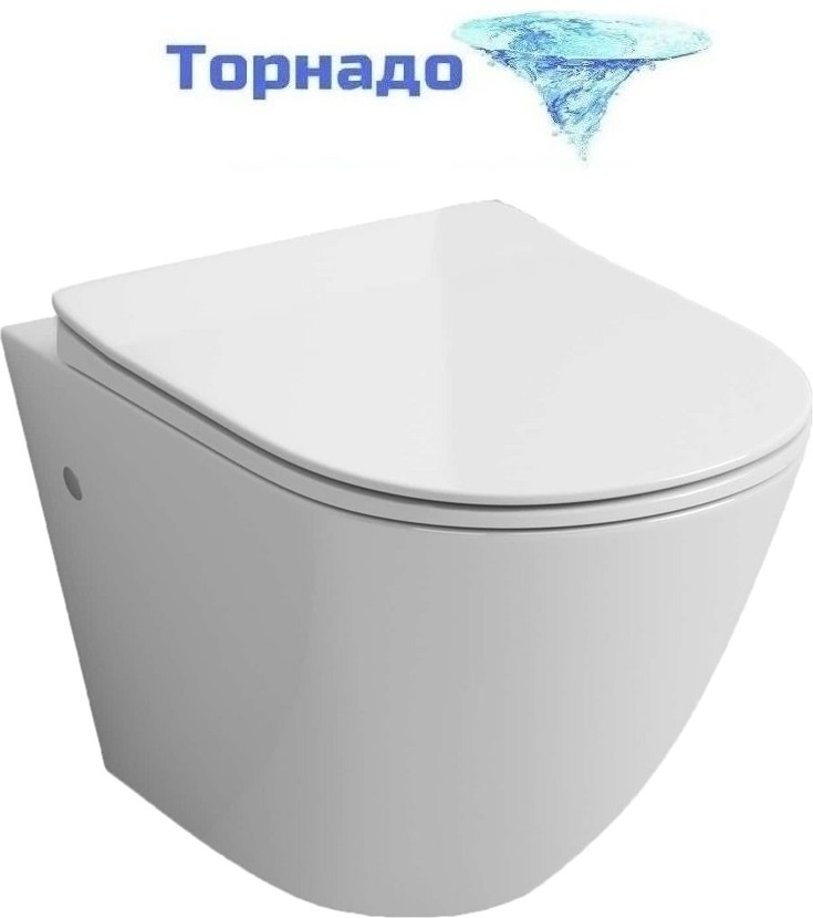 Унитаз подвесной безободковый Grossman GR-4411SQ с тонкой крышкой микролифт (система смыва Торнадо)