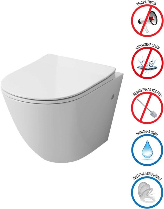 Унитаз подвесной безободковый Grossman GR-4411SQ, в комплекте сиденье с тонкой крышкой микролифт, цвет белый.