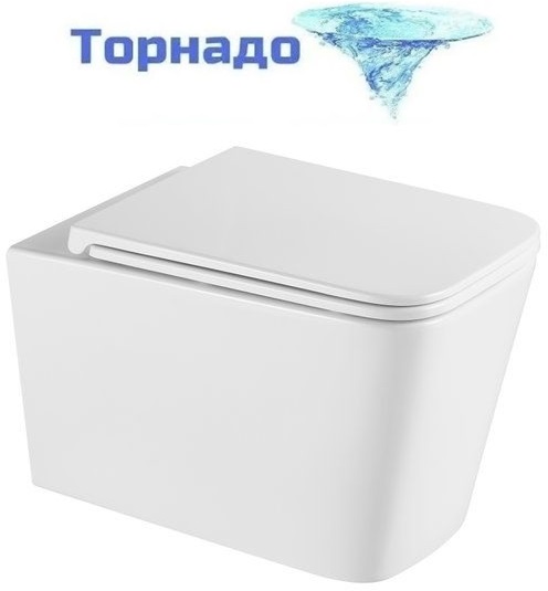 Унитаз подвесной безободковый Grossman GR-4441SQ с тонкой крышкой микролифт (система смыва Торнадо)