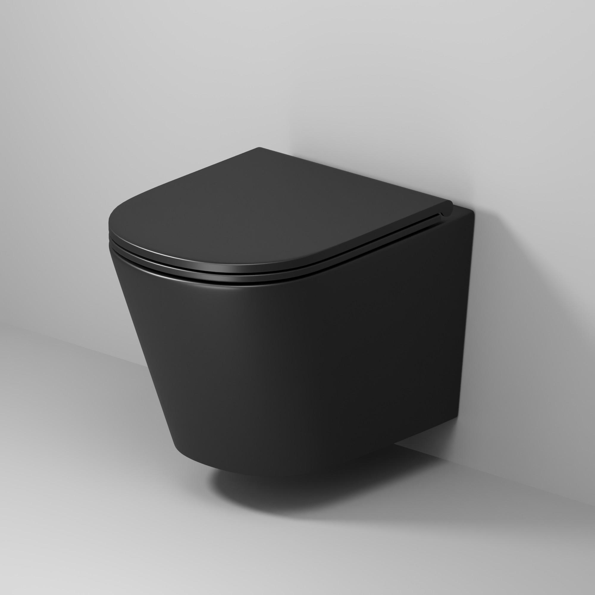 Унитаз подвесной безободковый Grossman GR-4478BMSQ, в комплекте сиденье с крышкой микролифт, цвет чёрный матовый.