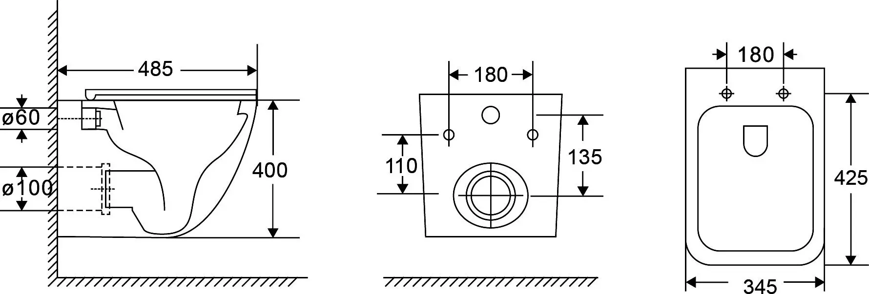 Характеристики унитаз безободковый,унитаз подвесной Grossman (GR-4497SQC)