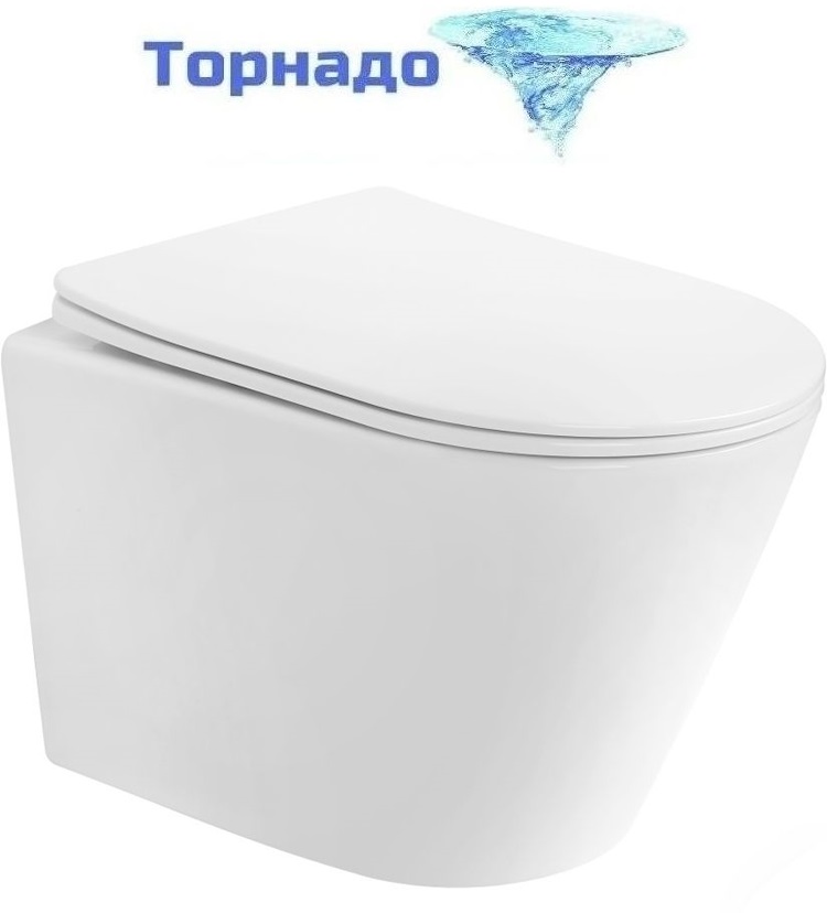 Унитаз подвесной безободковый Abber Bequem AC1102T с тонкой крышкой микролифт (Система смыва торнадо)