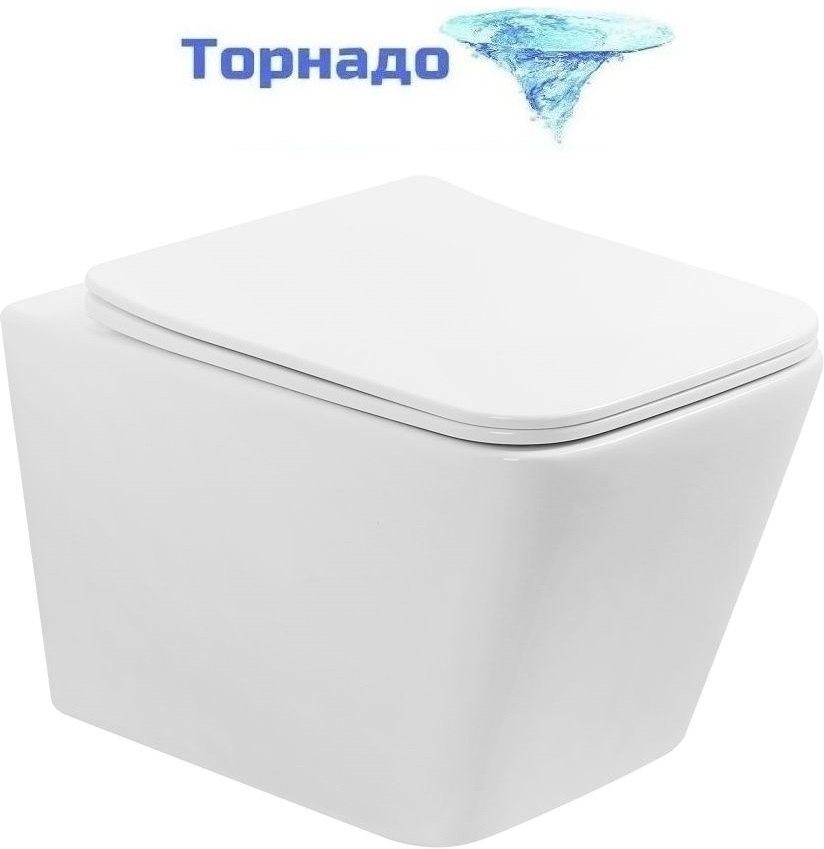 Унитаз подвесной безободковый Abber Rechteck AC1201T с тонкой крышкой микролифт (Система смыва торнадо)