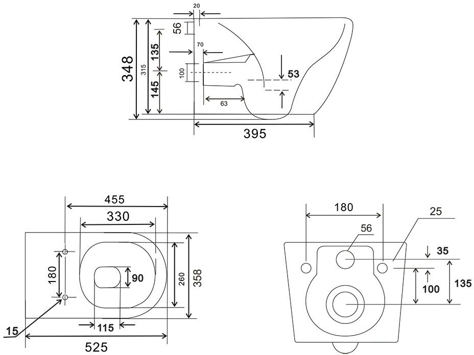 Характеристики унитаз безободковый,унитаз подвесной Veconi (VEN-52T)