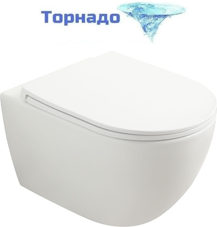 Унитаз подвесной безободковый Veconi Ento VEN-52T (Система смыва торнадо) с тонкой крышкой микролифт