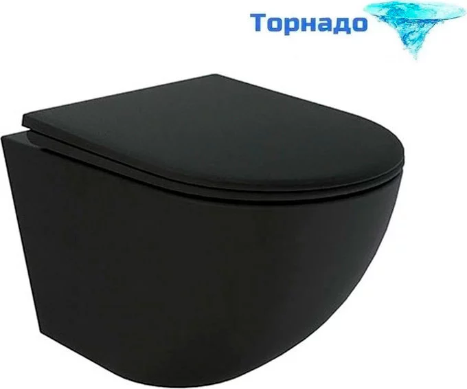 Унитаз подвесной безободковый Veconi Moro VMO-48TB (Система смыва торнадо) с крышкой микролифт, цвет - чёрный.