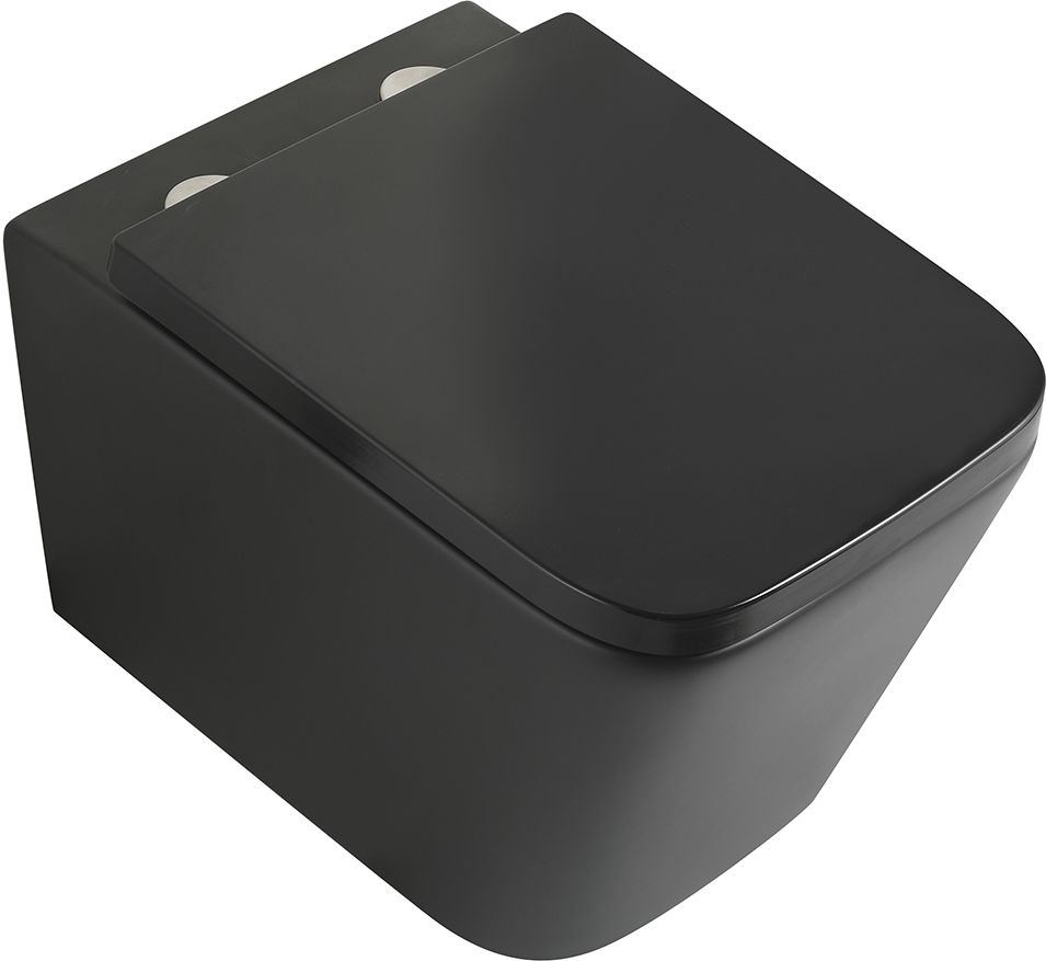 Унитаз подвесной безободковый Veconi Pulo VPU-51TB, сиденье с тонкой крышкой микролифт в комплекте, цвет чёрный матовый.