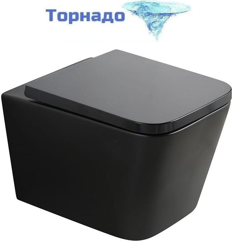 Унитаз подвесной безободковый Veconi Pulo VPU-51TB (Система смыва торнадо) с тонкой крышкой микролифт, чёрный матовый