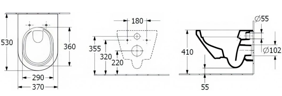- Открытый смывной край для облегчения чистки.