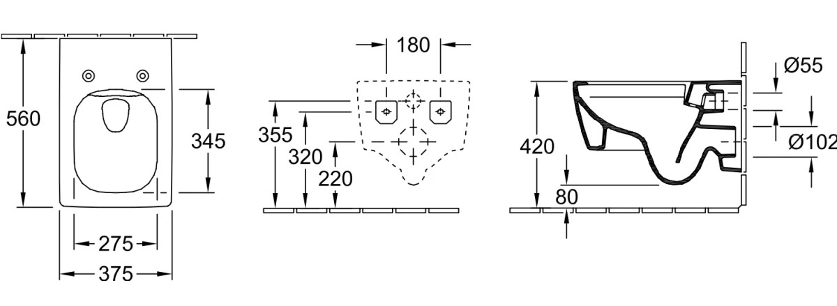 Характеристики унитаз безободковый, унитаз подвесной Villeroy&Boch (4633R0R7+8M24S1R7)