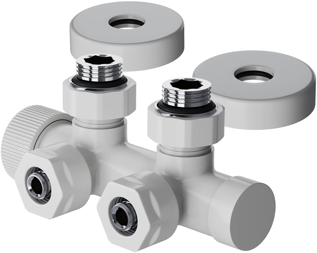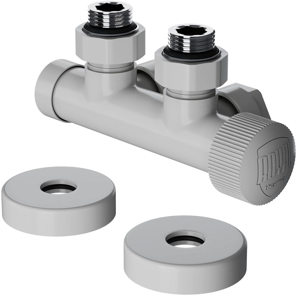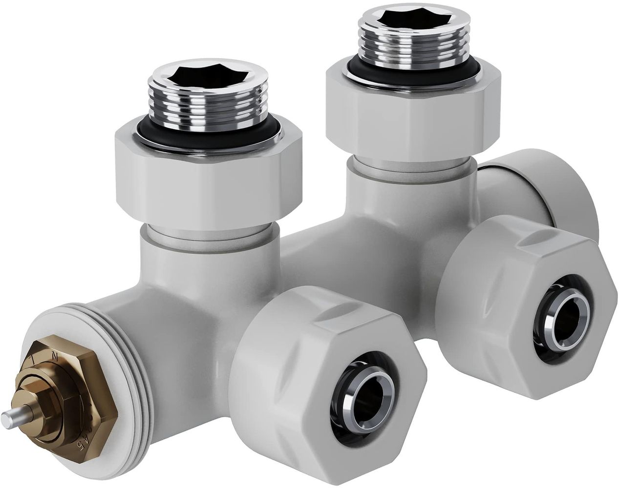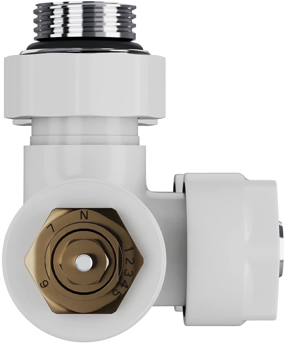 Узел нижнего подключения термостатический угловой Royal Thermo Design Pro 15мм М30х1,5 RANPU11215WH, цвет белый.