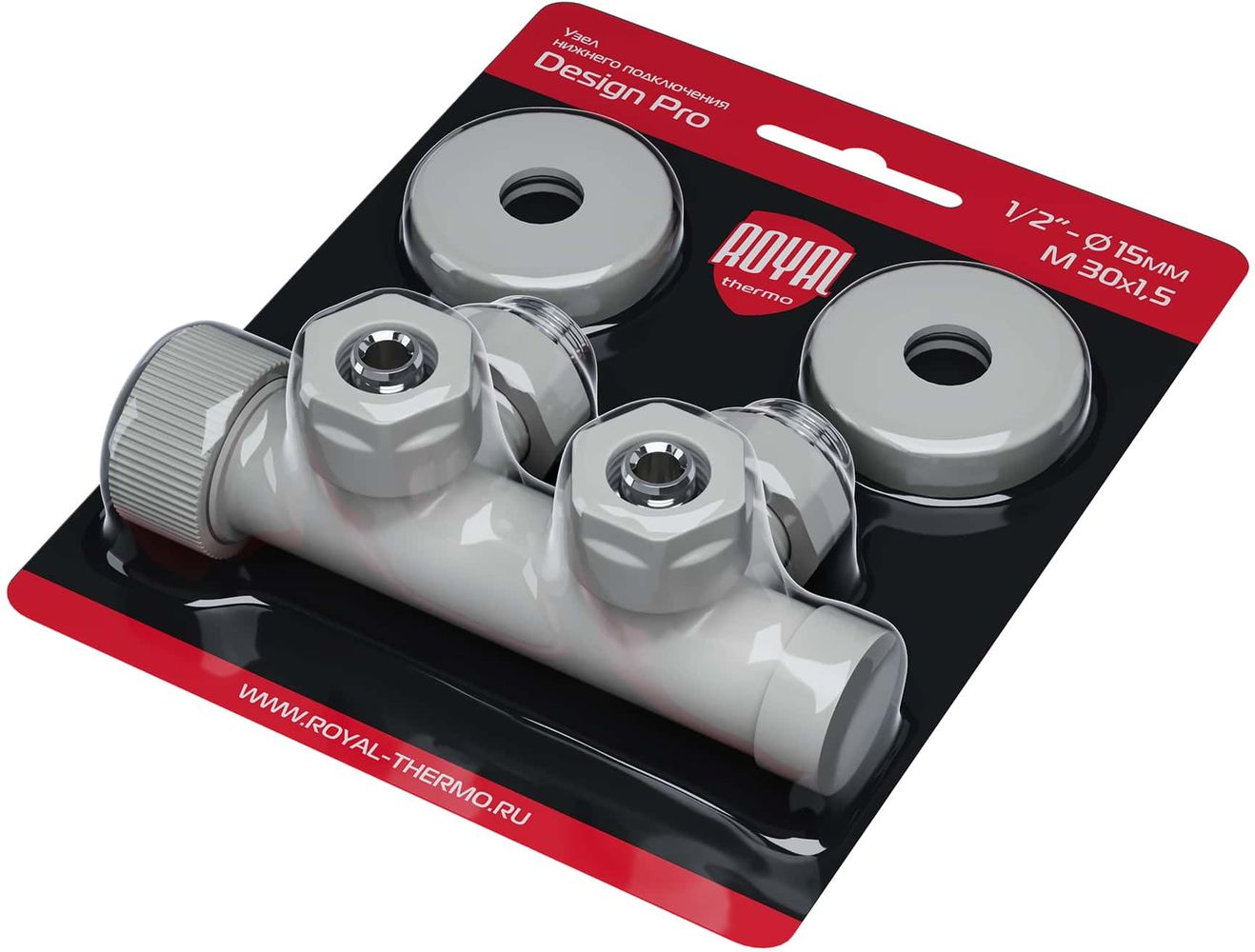 Узел нижнего подключения термостатический угловой Royal Thermo Design Pro 15мм М30х1,5 RANPU11215WH, белый